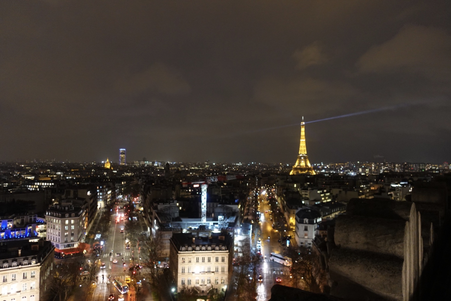 개선문 전망대의 아경이 특히 인기가 있는 이유는 스카이 라인에 따라 방사형으로 조명이 켜져 있는 파리의 전경과 에펠탑 야경을 함께 볼 수 있기 때문에 때문이에요. 그래서 에펠탑이 반짝이는 정각마다 에펠탑이 있는 쪽의 전망대에 많은 사람들이 카메라를 들고 몰려 있는 것을 볼 수 있었습니다. 개선문 전망대에서는 에펠탑 뿐만 아니라 몽마르뜨 언덕의 샤크레쾨레 성당과 노트르담 대성당 등의 주요 건축물들도 모두 볼 수 있어요.