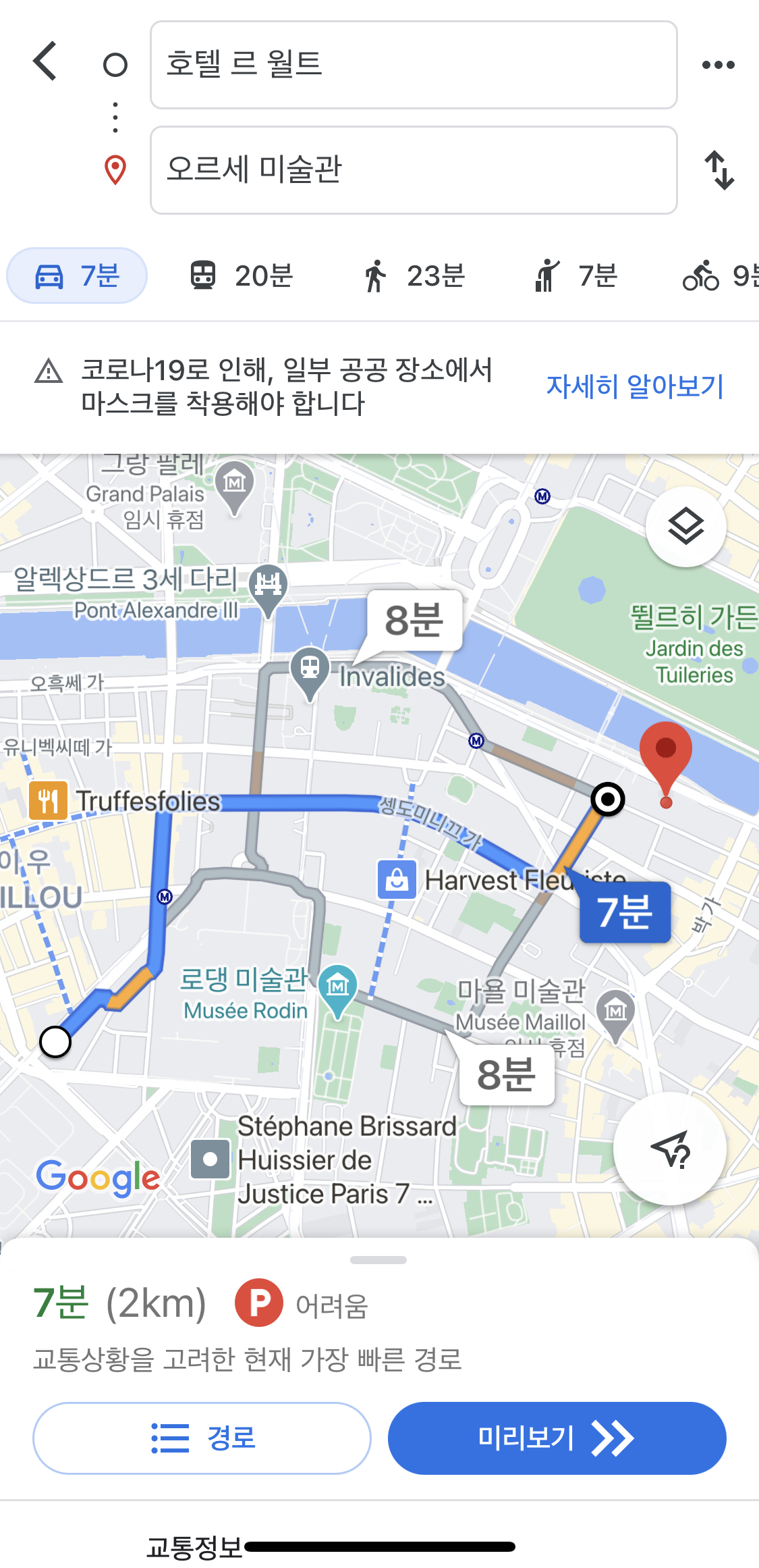 구글맵의 가장 큰 장점은 웬만큼 알려진 장소라면 한국말로 검색을 해도 해당 장소가 검색이 된다는 점이에요. 프랑스어와 정확한 스펠링을 몰라도 검색할 수 있었어요. 그리고 내가 가고싶은 장소 주변의 맛집들과 운영시간, 그 맛집의 별점도 볼 수 있어서 먹을 걸 미처 정하지 못하고 가도 구글 맵으로 해결 할 수 있어서 여행 가이드 어플로 강력 추천 드립니다.